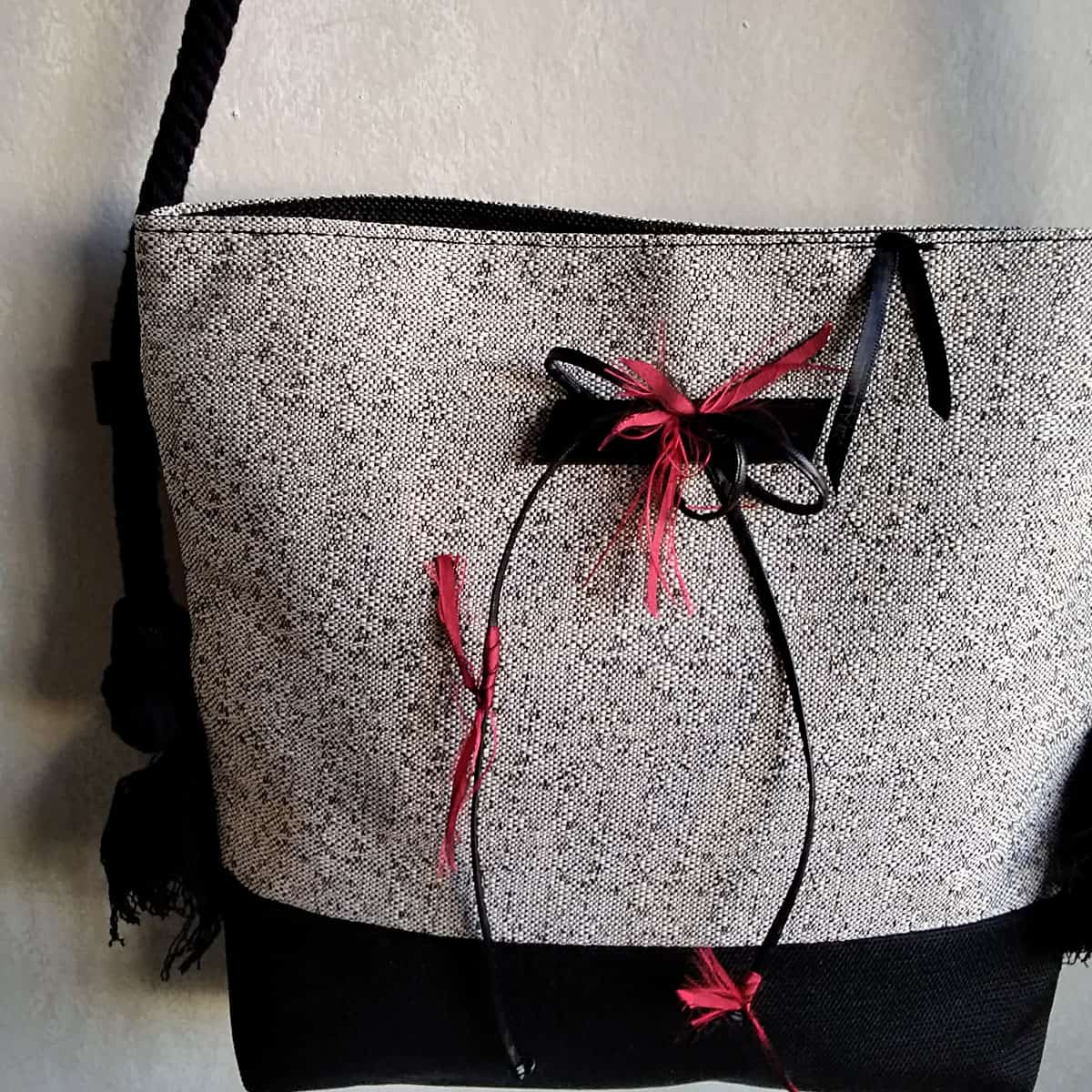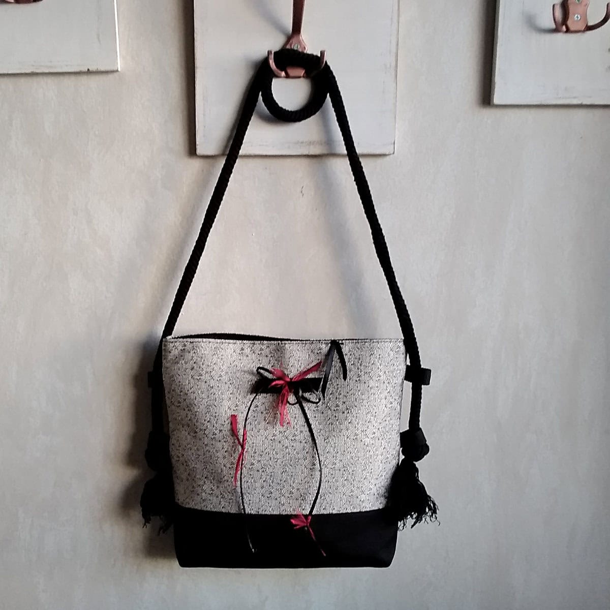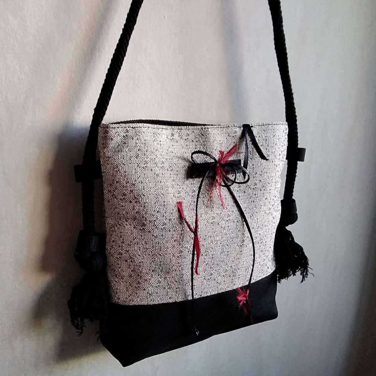 - Χειροποίητη τσαντα χιαστι με κορδονι και κόσμημα της συλλογής “Reds”