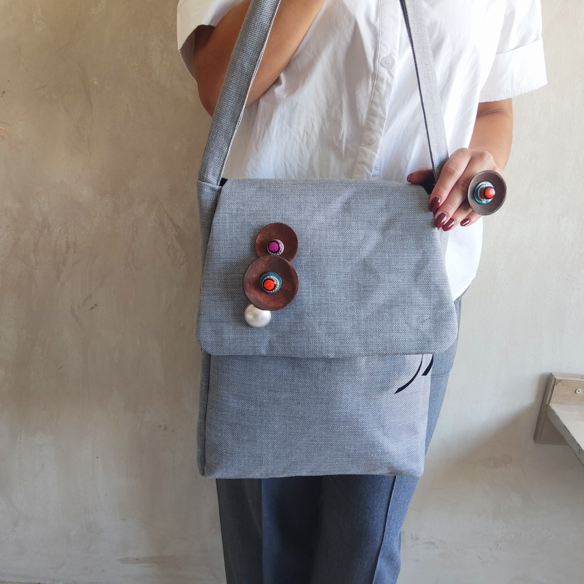 Χειροποίητη τσάντα ώμου με κόσμημα της συλλογής “Janis”